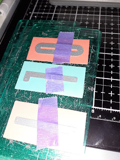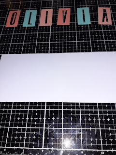 Firstly I cut all the rectangles out one for each letter in this case 6 letters (Olivia). I taped two dies together to speed up the cutting process. I used the different colours of the cardstock.