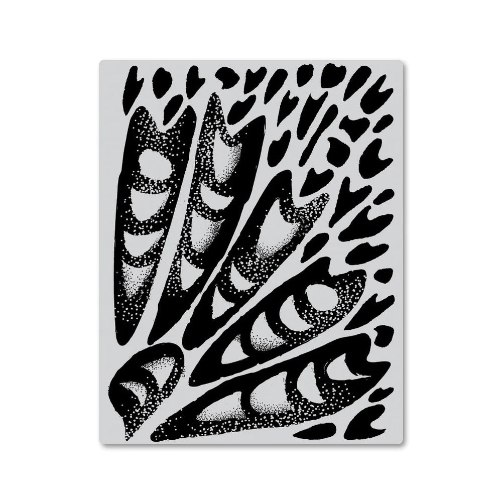 A beautiful rendition of the wing of a butterfly, which almost looks floral in its organic nature. This stamp is the perfect backdrop to your Mother's Day, graduation, and congratulations cards as well as being a stunning layer for mixed media projects.
