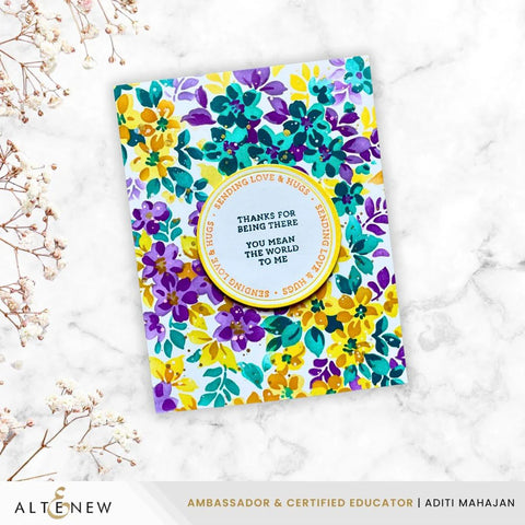 Perfect Pairings: Sparkled Frame Die ▪ Pen Sketched Silhouette Stamp Set ▪ Stencil Art: Ditsy Flowers Wallpaper Layering Stencil Set (7 in 1)