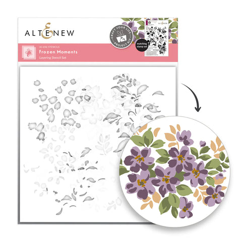 This elegant kit helps you capture life’s quiet, meaningful pauses with a beautiful mix of florals and ornate textures. The stamp set includes a curated selection of silhouette-style blooms—bold, expressive, and perfect for dramatic focal points or soft, layered backgrounds. The coordinating embossing folder and die set elevate your projects with baroque-inspired frames, adding rich dimension and timeless vintage flair. To complete the experience, the layering stencils bring three unique floral clusters to life—adding effortless, painterly depth to your projects.
