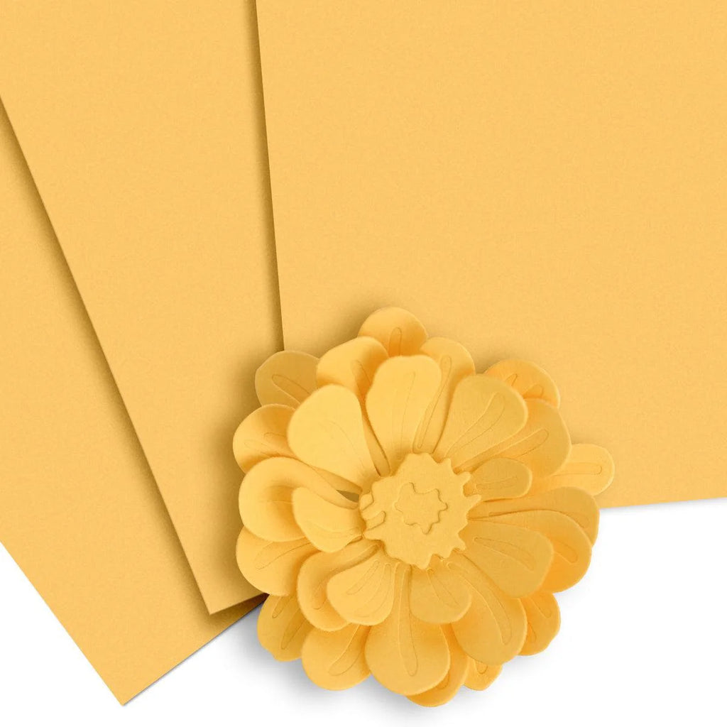 Crafty Necessities: Warm Sunshine Cardstock is is your go-to crafting companion to achieve beautiful and vibrant projects. With its premium quality and a heavy weight of 216 gsm/80 lbs, this cardstock ensures a high-quality finish that will bring your creative vision to life. Each pack includes 10 letter-sized sheets, providing ample crafting material for die cutting, flower making, etc. Warm Sunshine is part of our Summer Afternoon color family. This is a warm and vibrant shade of yellow that embodies the joyful energy of a sun-drenched afternoon.