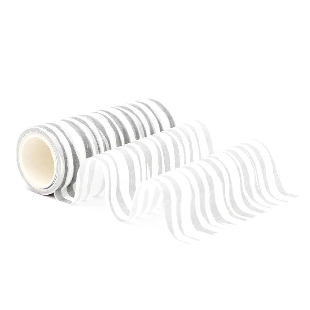 This washi tape is definitely a craftroom staple. It features an abstract wave design in our signature Limestone color. The light gray color makes it quite versatile, for it can be used as a full background, or to add accent features to your projects. The options with this washi tape are endless!