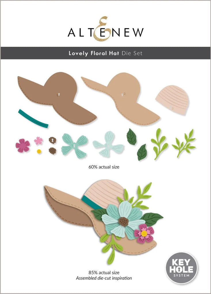 It features a four-layer hat design adorned with beautiful flowers & foliage. With intricate embossed lines, this set adds depth & dimension to your handmade creations, ensuring a captivating result. This gorgeous layering die set features Altenew's Key-Hole System, making assembly a breeze even for beginners. Use the hat with or without the flowers and let your creativity shine!