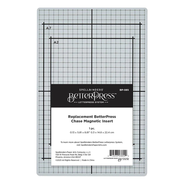 Replacement BetterPress Chase Magnetic Insert works in the BetterPress System. The Chase Magnetic Insert helps to secure the press plate in place to apply ink.