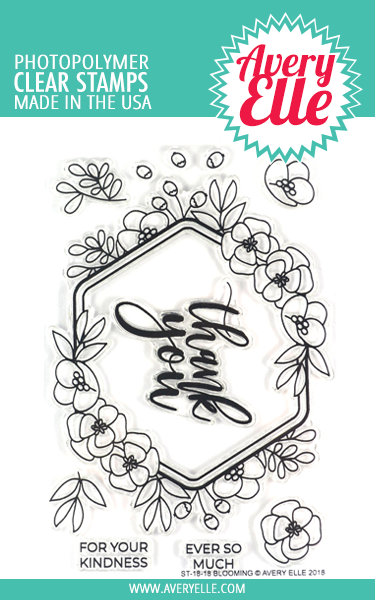 Show your thanks with our Blooming stamp set. The hexagon shaped frame and flowers creates an elegant image. Add the extra sentiments for a more personalized touch. 11 total stamps. Hexagon/flower frame stamp measures: 4 5/8" x 3 5/8"; flower bud stamp measures: 3/16" x 1/4"; for your kindness sentiment measures: 7/8" x 5/16". Our Exclusive clear stamps are proudly made in the USA.
