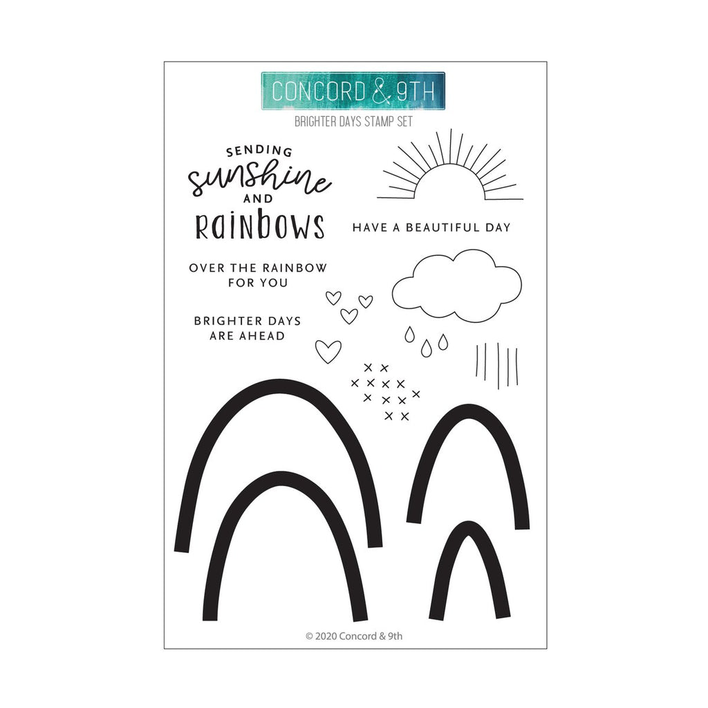 Brighter days are ahead! Whether it's never-ending springtime showers or a global pandemic, you can easily share happiness and hope with the Brighter Days Stamp Set. Build a rainbow, add in clouds, sunshine, raindrops, or even "heartdrops," and then pick your favorite sentiment. Coordinates with the Brighter Days Dies. 15 stamps. 4" x 6".