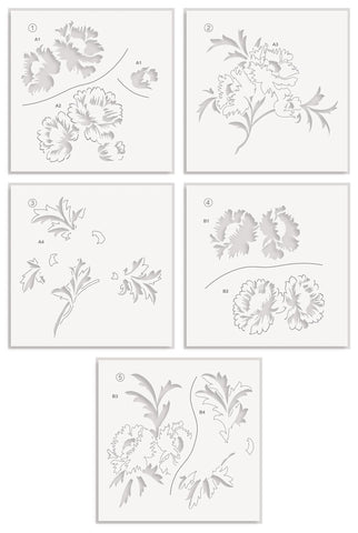- One 4.5" x 6" layering stencil set with four stencils that coordinate with the stamp set