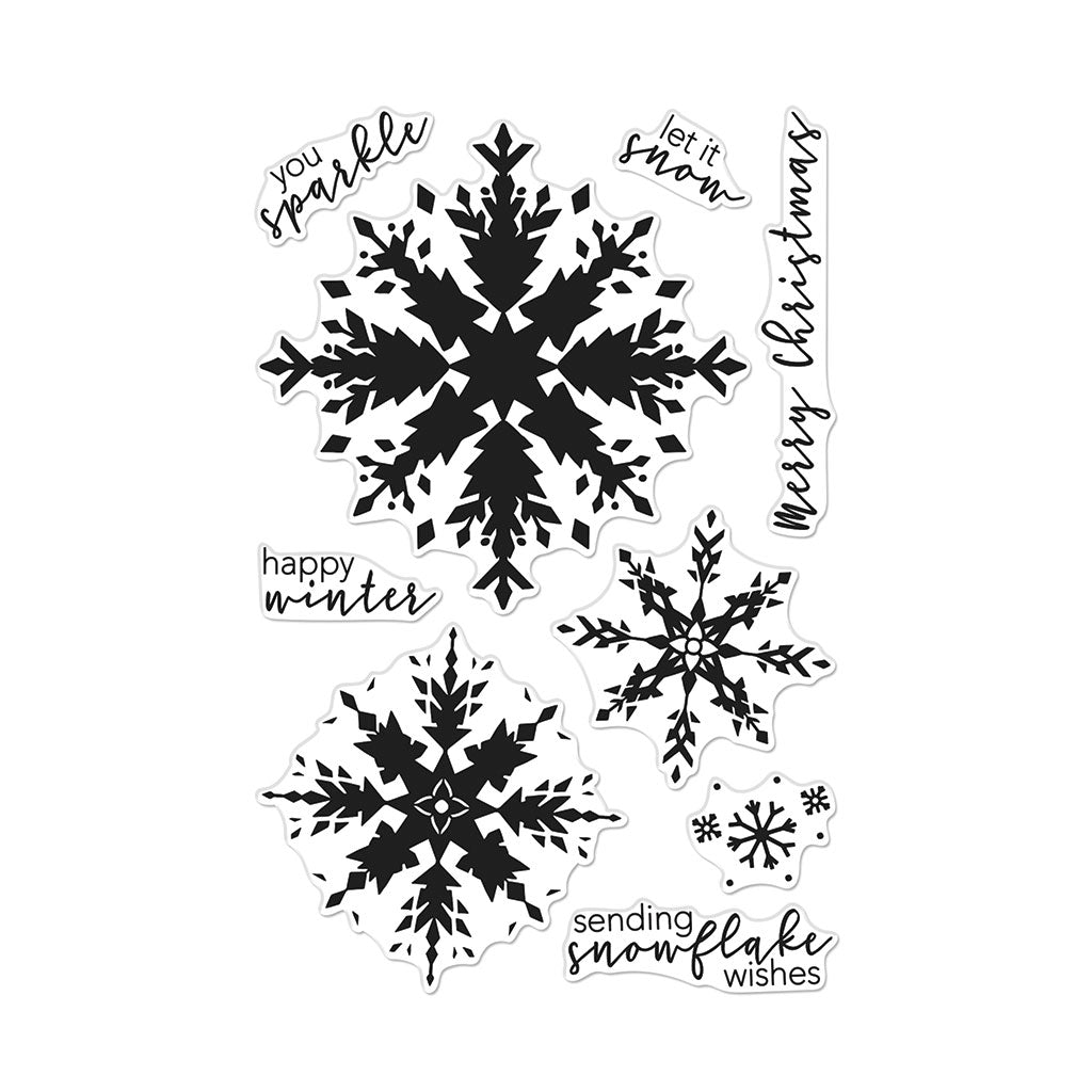 Use this timeless set to build beautifully intricate snowflakes. Also included are five holiday and winter themed sentiment stamps.