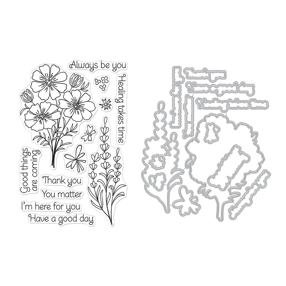 Experience the joy of creating stunning and uplifting messages with CM756 Cosmos and Lavender clear stamp set. Perfect for crafting beautiful heartfelt cards.