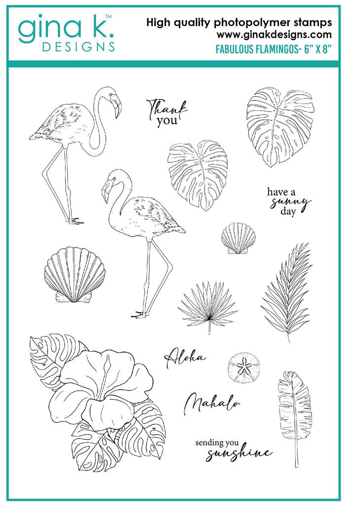 Fabulous Flamingos is a stamp set by Hannah Drapinski. This set is made of premium clear photopolymer and measures 6" X 8". Made in the USA