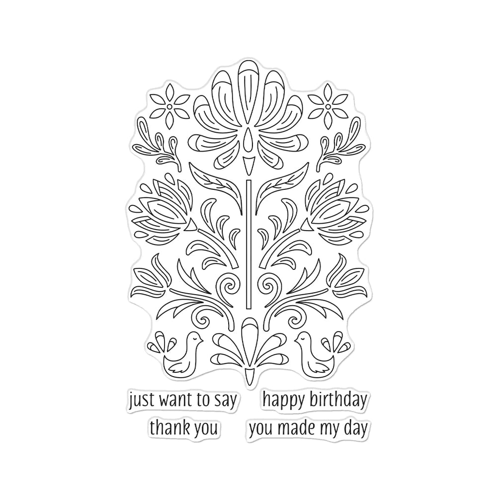 This stamp set features a beautiful floral design and also includes a handful of useful messages. Combine with SA273 Color Layering Folk Art Stencils for effortless coloring.