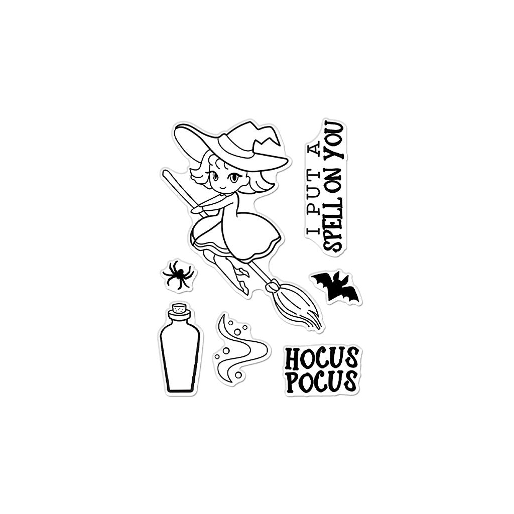 A sweet and playful take on Halloween. This set has a flying witch, a bat, a spider and a potion bottle, as well as two sentiments.