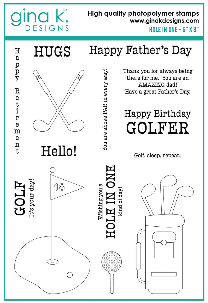 Hole in One is a stamp set by Debrah Warner. This set is made of premium clear photopolymer and measures 6" X 8". Made in the USA