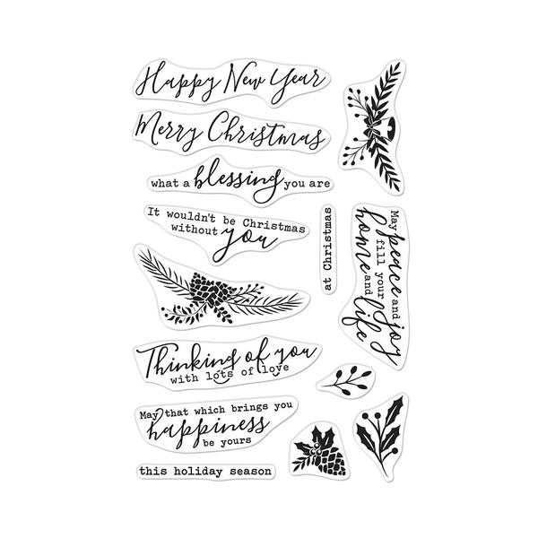 A plethora of sentiments along with images of holiday greenery make this a set you will use over and over in your holiday crafting. The timeless greetings in a modern mix of fonts are perfect for cards, gift tags, wrapping paper, place cards and hostess gifts.