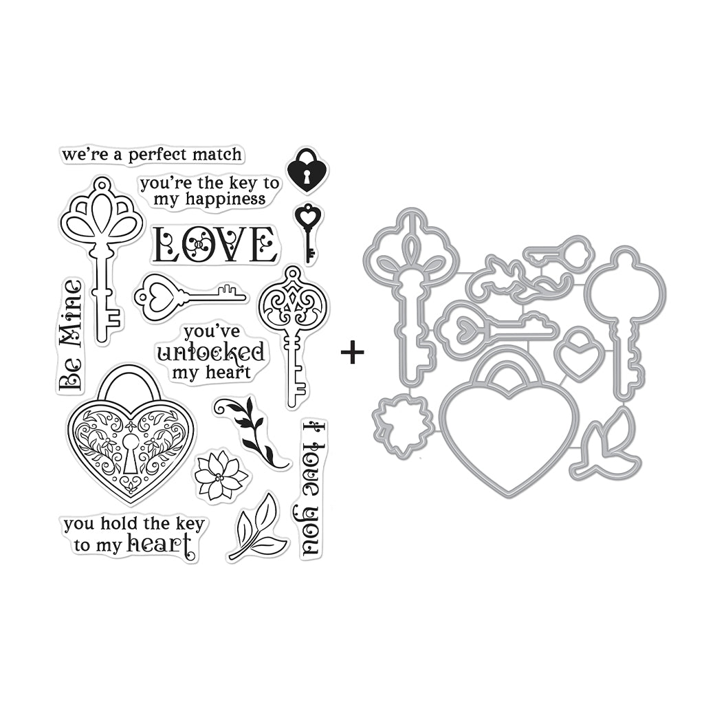 Hero Arts stamps come paired with matching Frame Cuts that are specifically designed to elegantly work together for stamping creativity. Get both together in this combo that includes: CM605 Key to My Heart and DF026 Key to My Heart Frame Cuts (C).