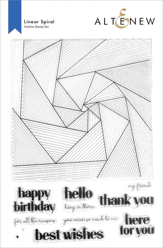 The designer of the Linear Spiral Stamp Set wanted to go in an entirely new direction than she did in previous sets to create this inspired linear spiral. Take that inspiration with you in the craft room for your projects. Stamp the unique geometric pattern as a nice background for your card along with your choice of one of nine complementary bold and cursive sentiments!