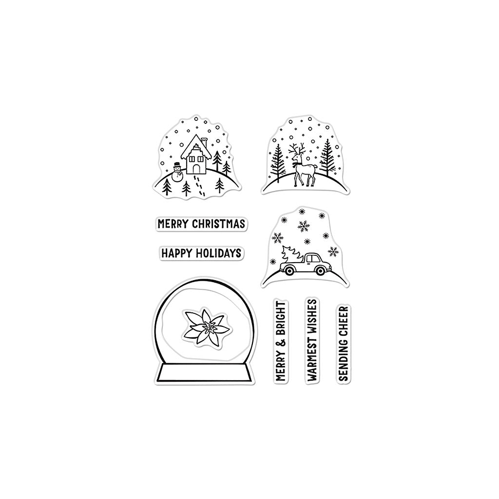 This mix & match set comes with three snow globe scenes, as well as a snow globe outline, single flower stamp and five sentiments.