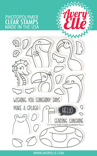Add another fun Peek-A-Boo set to your collection.  Our Peek-A-Boo Summer Pals stamp set includes ocean and coastal creatures, like a shark, flamingo, and crab.  28 total stamps. Seahorse stamp measures: 15/16" x 1 3/8"; floatie stamp measures: 2 5/16" x 1 1/8"; "make a splash" sentiment stamp measures: 1 5/16" x 1/4".  Our Exclusive clear stamps are proudly made in the USA.
