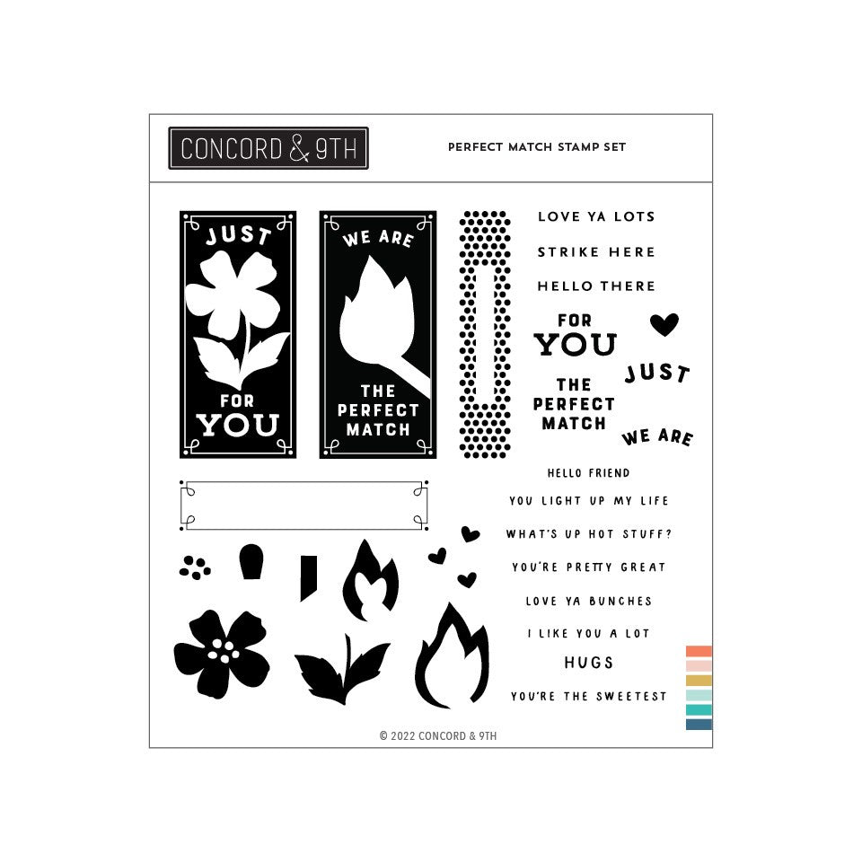 The Perfect Match Stamp Set is fun bunch of stamps designed to be used with the coordinating Perfect Matchbox Dies to personalize and embellish the die-cut match boxes. Fill All of the small greetings are sized to fit on the die-cut matches, while the other stamps can be used to fill in the flowers and matches in the color combination of your choosing.