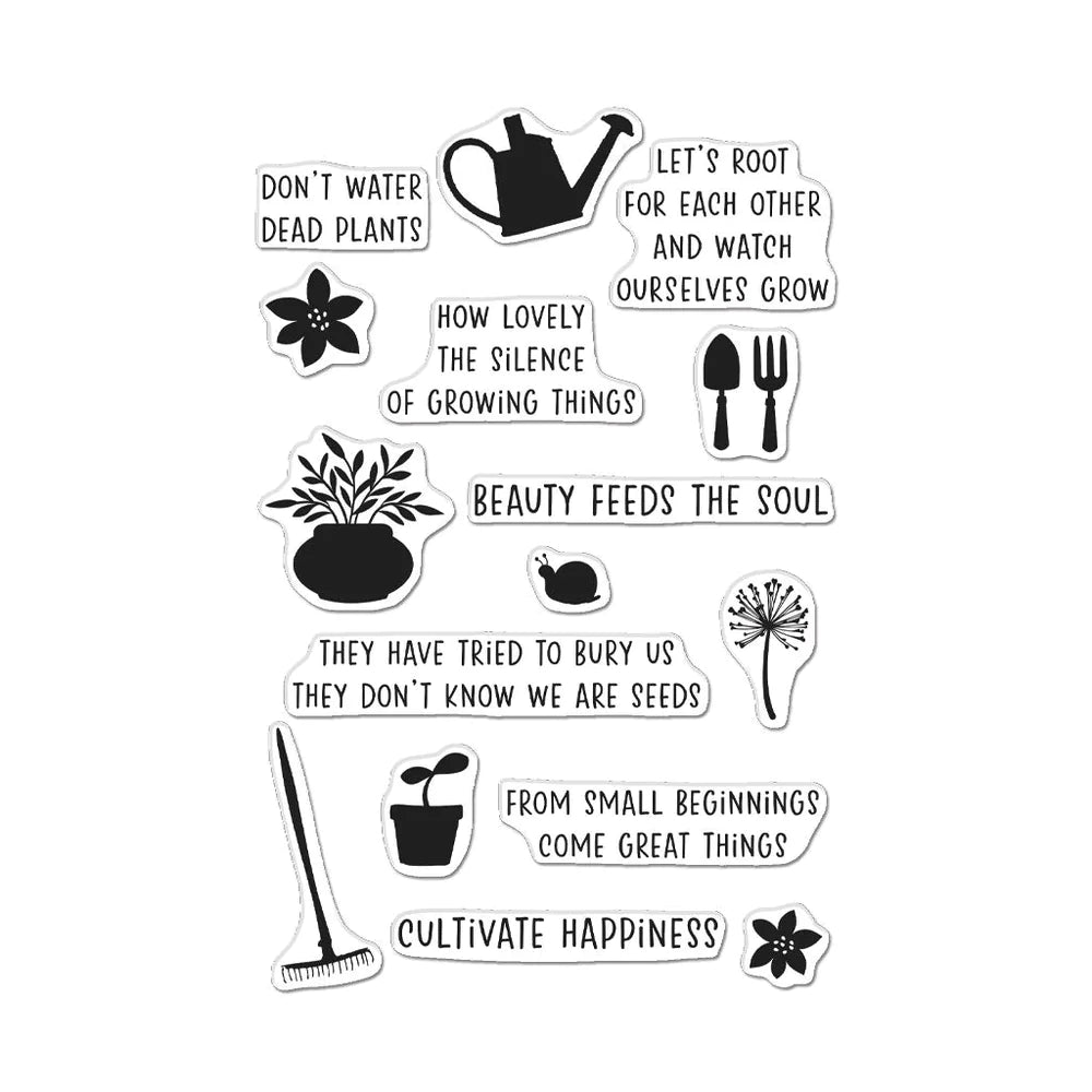 This set features seven sentiments and silhouettes from the garden.