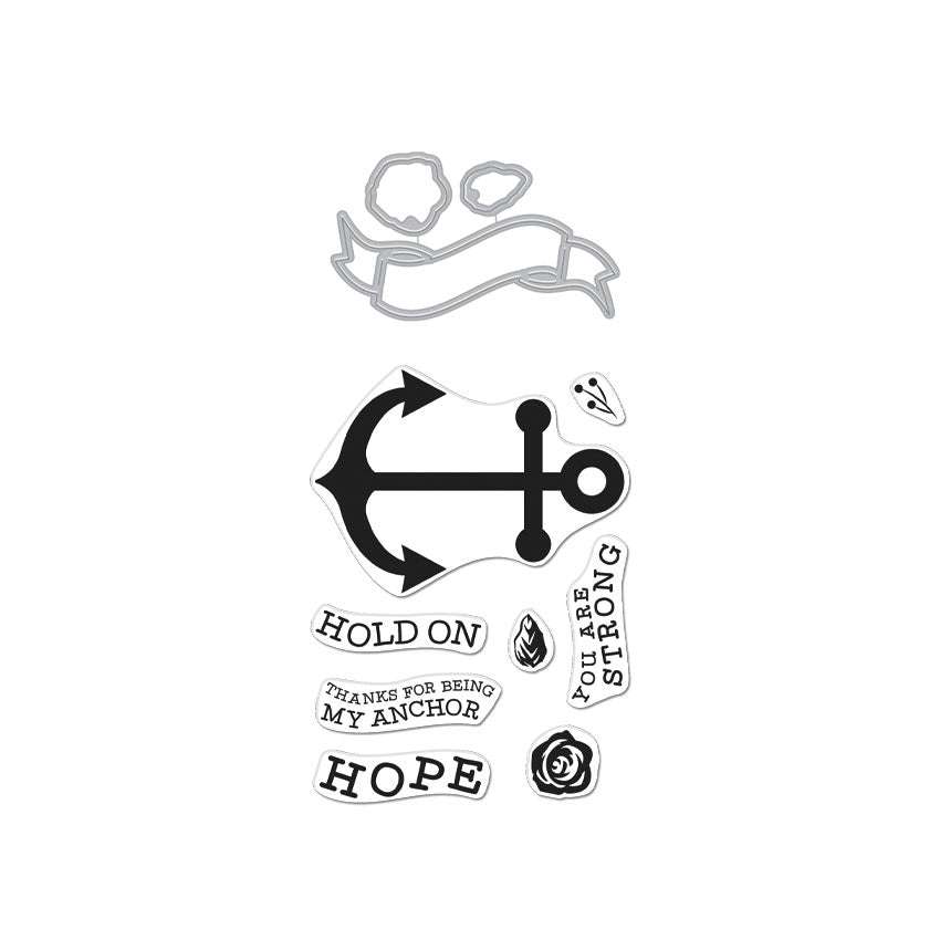 Add the strength and classic lines of this anchor and coordinating sentiments to your next project. Use the dies to cut out your sentiments, roses and leaves and place over the anchor for a strong and lovely card or other paper crafting project.