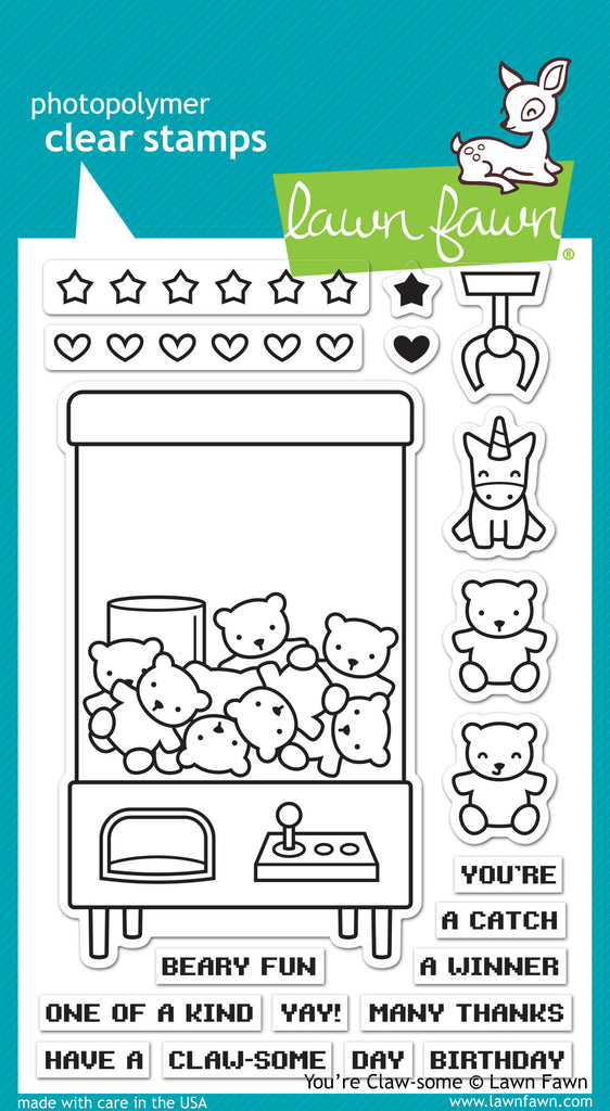 Coordinating set ideas: Use a frame from Stitched Square Frames to create a shaker card, with bears shaking inside the claw machine. Or, use Slide on Over to create a fun interactive card, with the claw sliding back and forth!