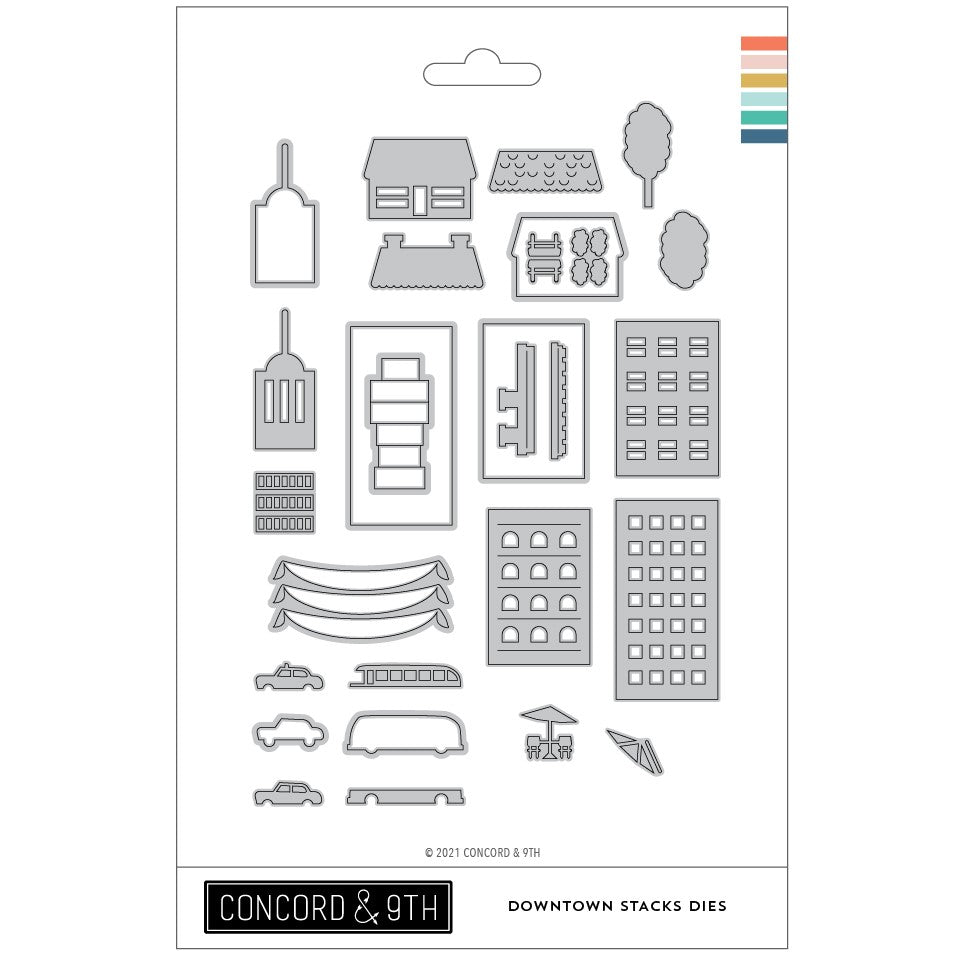 Piece together charming little cities full of dreams with the Downtown Stacks Dies! There are several types of buildings to choose from as well as trees, benches, taxis, busses, and other details that will truly bring your tiny town to life. This set was designed to be used with the Pop-Up Card Dies in this month's release and the Card Stacks Base Dies from earlier this year, but also fit nicely on standard and slim link cards. Check out the coordinating Downtown Stacks Stamp Set for sentiments, shop names, balloons, and fireworks sized to complete your project!