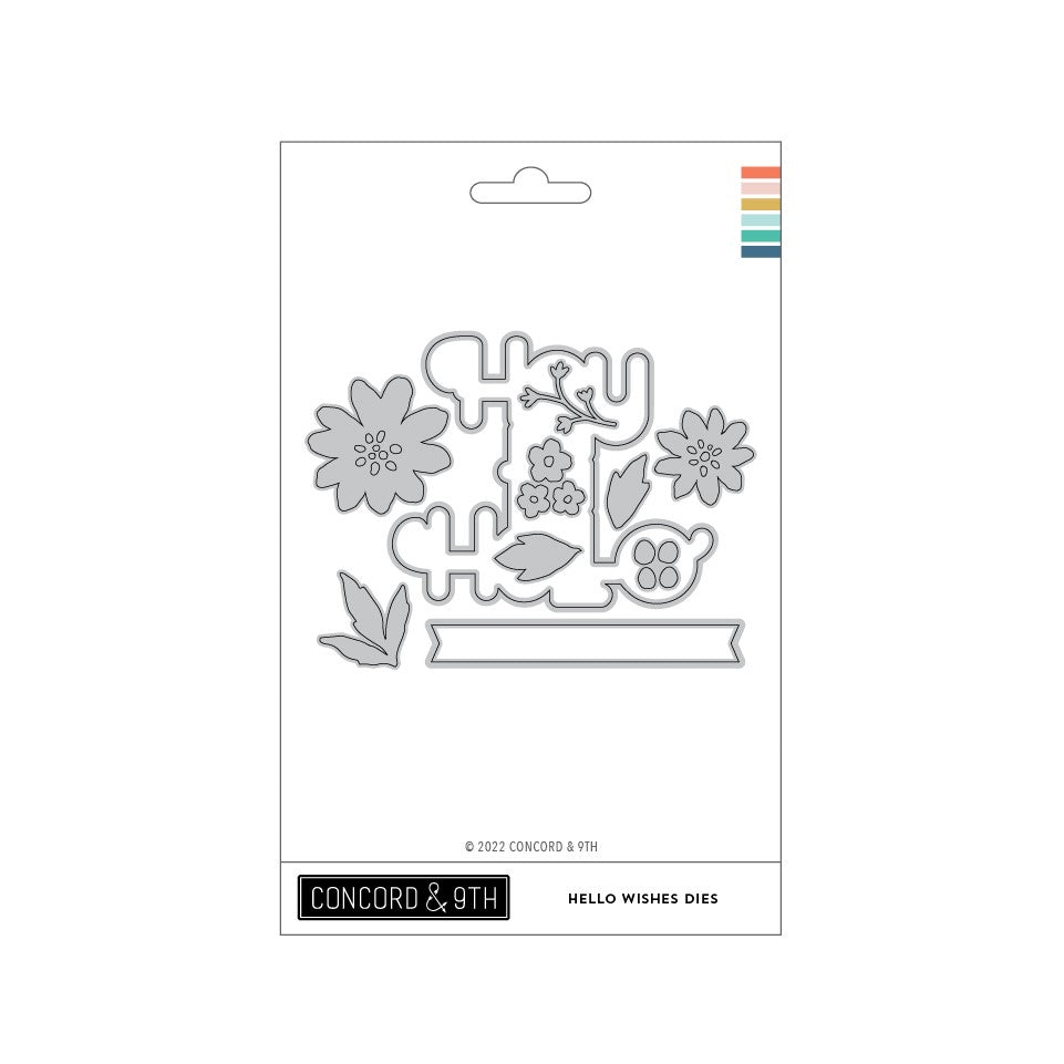 The Hello Wishes Dies provide die-cut floral images that mimic the flowers in the coordinating Hello Wishes Stamp Set as well dies that cut out the various greetings. 10 pieces