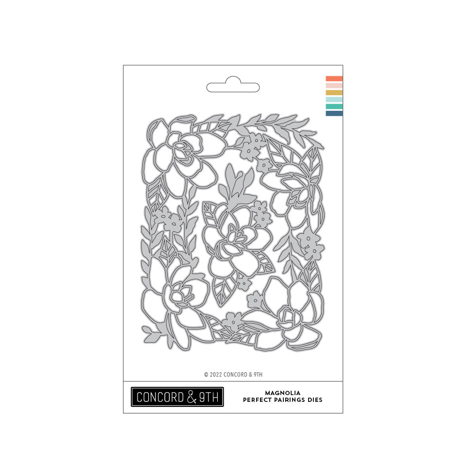 Add a touch of elegance to your cards with the Magnolia Perfect Pairings Dies! This set contains one large delicate floral image that creates a pretty border, as well as a single magnolia to make smaller embellishments.