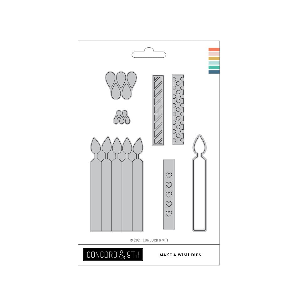Piece together birthday candles with the Make a Wish Dies! This set includes a multi-candle die as well as two flame dies, making it quick and easy to cut out several candles at once. The adorable heart, stripe, and dot overlay pieces are there to add even more fun to the celebration! Coordinate your candles with the Make a Wish Stamp Set for even more possibilities.