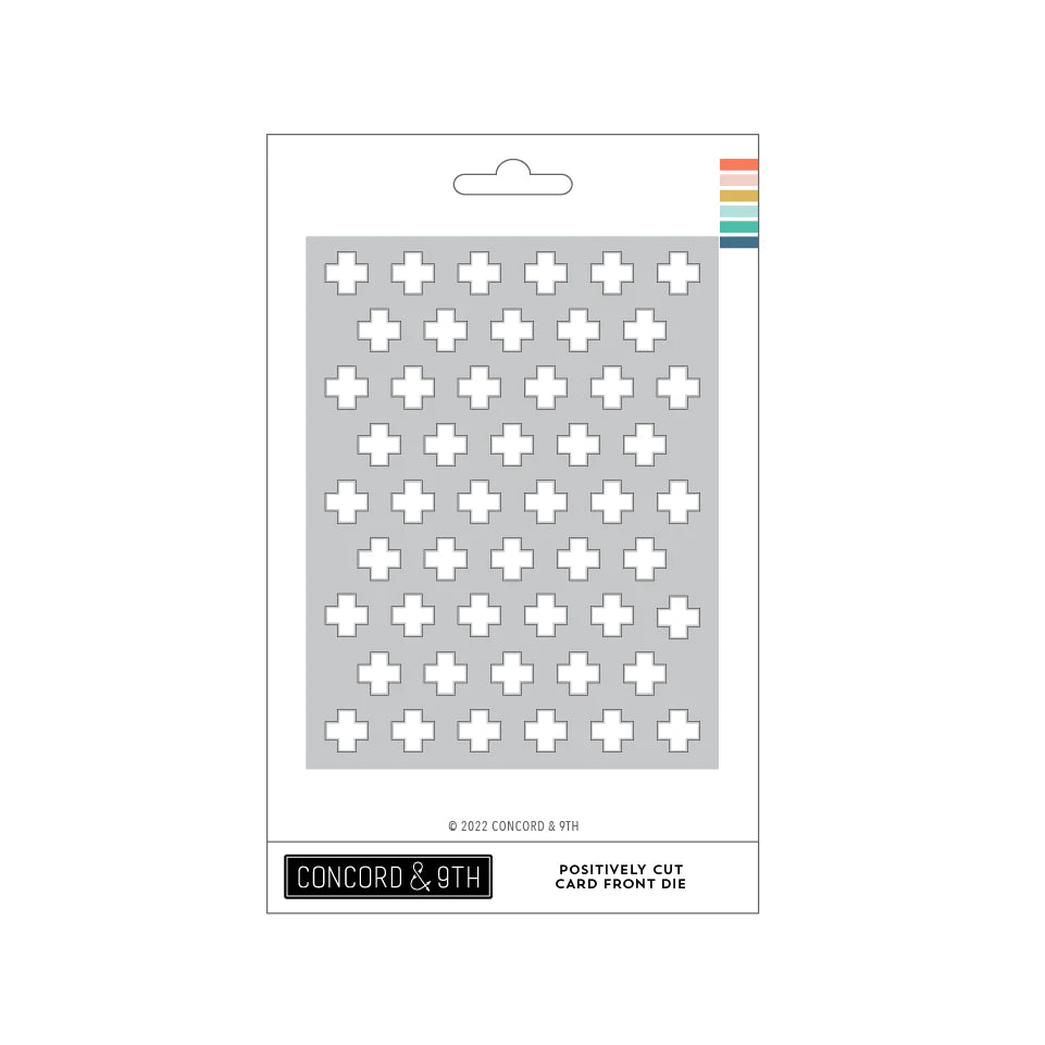 Create quick and easy backgrounds with the Positively Cut Card Front Die! Use it on its own or with the coordinating Positively Stitched Card Front Die to cut out several stitched Swiss crosses to use on various projects. 1 die.