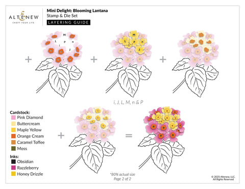 The Mini Delight: Blooming Lantana Stamp & Die Set makes creating lush, dimensional florals a breeze! The stamp set includes a delicate stem and 15 labeled flower centers (A–P) so you can easily stamp and build a beautiful lantana bloom with precise placement. Pair it with the coordinating die set, which features 15 matching die-cut blossoms, each etched with a corresponding letter for stress-free layering. Just follow the alphabet to craft a full, vibrant bloom bursting with texture, color, and charm. Beginner or seasoned, this little set packs a big creative punch!