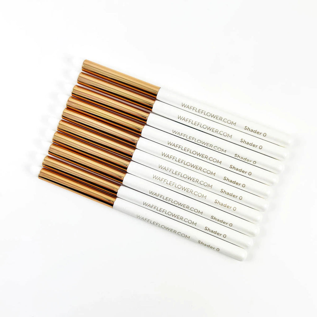 Made from the same high quality, ultra soft bristols as our Blending Brushes, the Waffle Flower Shader 0 brushes are round tip brushes with bristols arranged at an angle for comfort and precision. These brushes allow you to achieve beautiful results using a variety of techniques from laying down multiple layers of color to defining edges to shading. For best results, apply in a "drag-n-lift" or "flicking" motion.