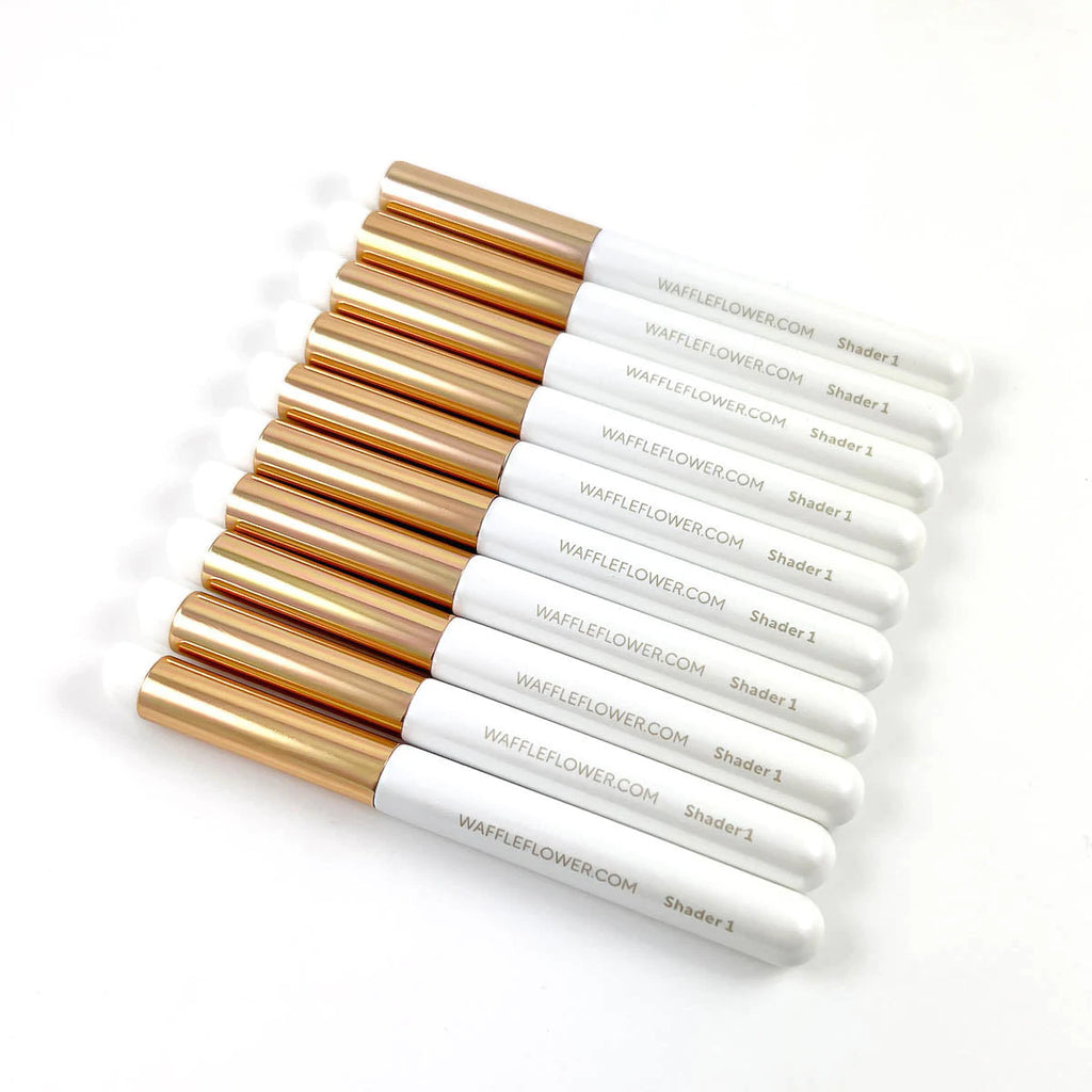 Made from the same high quality, ultra soft bristols as our Blending Brushes, the Waffle Flower Shader 1 brushes are round tip brushes with bristols arranged at an angle for comfort and precision. These brushes allow you to achieve beautiful results using a variety of techniques from laying down multiple layers of color to defining edges to shading. For best results, apply in a "drag-n-lift" or "flicking" motion.