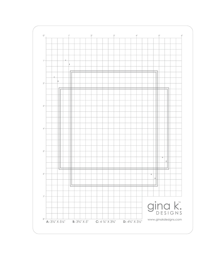 The Gina K. Designs Sticky Mat holds your card stock in place! This low-tack mat is perfect for stenciling, ink blending, and it fits inside of the Misti Stamp Tool. Two layering guides are printed on the mat to make layering your Master Layouts 1 and 2 panels a breeze!