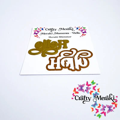 The Crafty Meraki - Meraki Moments Hello Hot Foil plate and Die combo is a versatile tool for cardmaking and scrapbooking. This 2 piece set allows you to easily add a foiled letterpress look to your projects, while also providing the option to cut out the foiled element with the included die. Elevate your everyday cards with this must-have set.