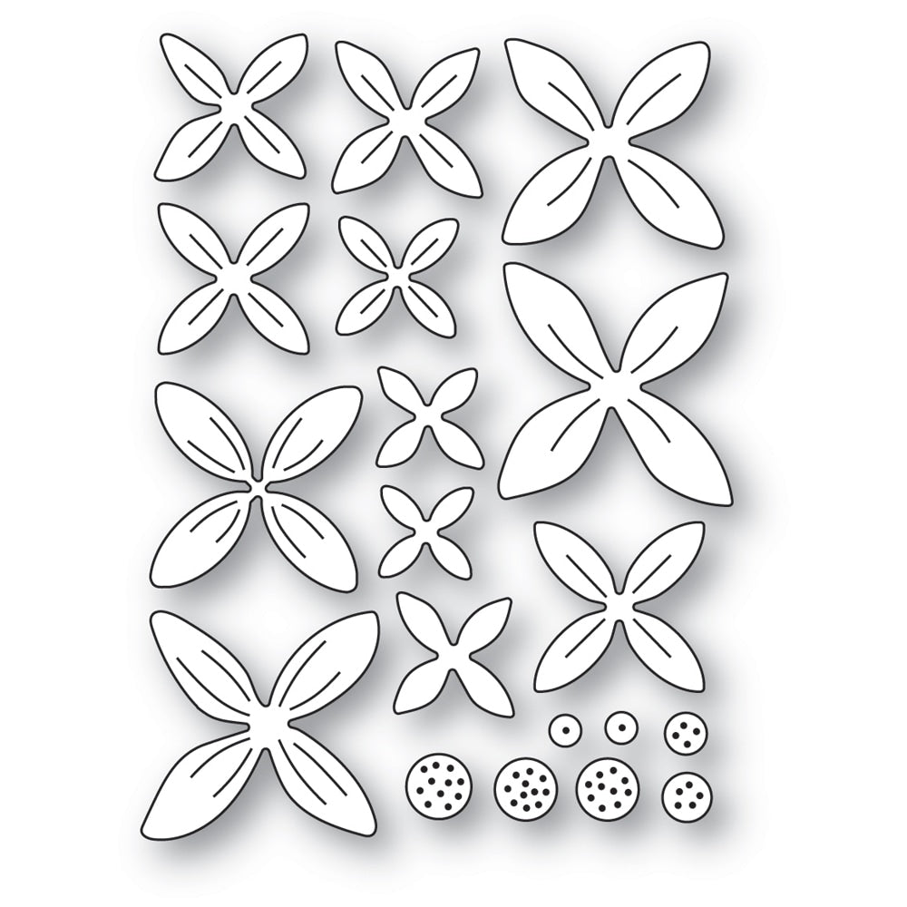 1 to 2.5 centimeters wide, 1.5 to 2.5 centimeters tallpetals, 0.5 to 0.8 centimeter diameter middles