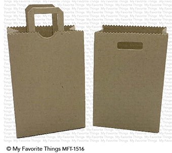 The Paper Bag Treat Box Die-namics creates an assembled bag measuring 2 ½” x 3 ¾” x 1 ½”.