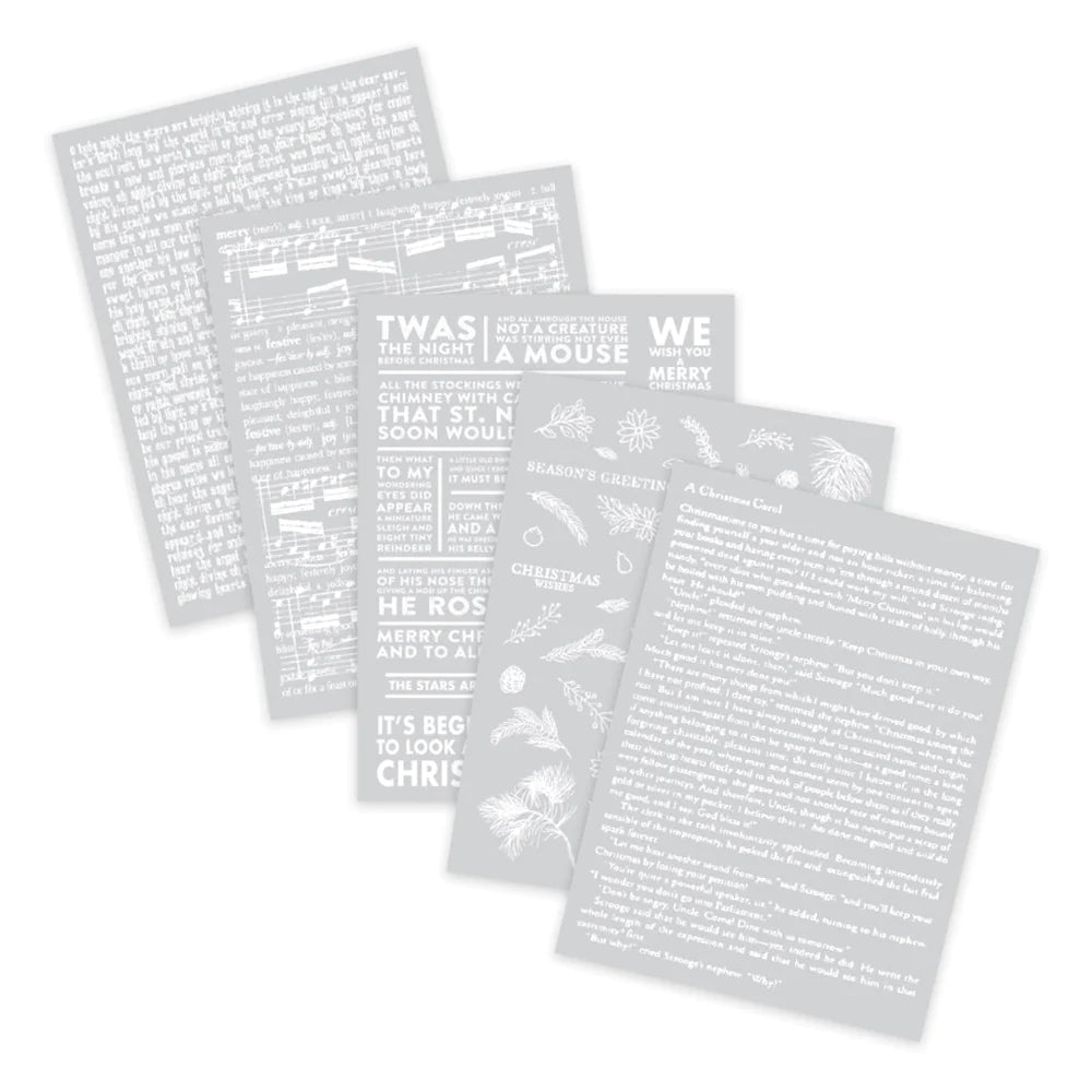 Let your creativity soar this holiday season! Decorate your holiday cards with dramatic white text and illustrations. These five White Holiday Collage Hero Transfers have all the charm of mixed media without any of the mess. Rub them onto your project for some extra festive flair.