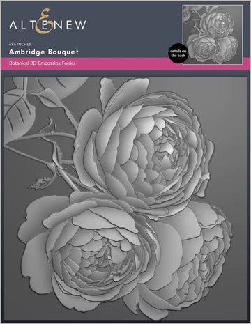 This 3D Embossing Folder features 3 beautiful Ambridge Roses hanging from a branch. Create unique backgrounds and color in by blending ink to create beautiful artwork for your projects.