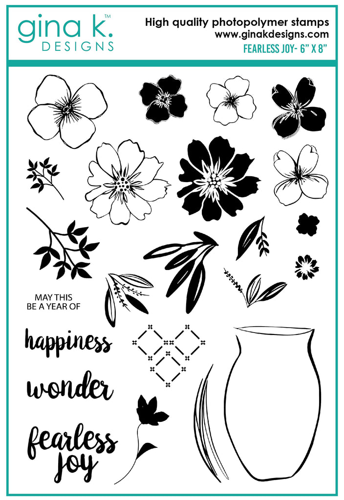 Fearless Joy is a Stamp Set by Lisa Hetrick. This versatile stamp set is fabulous for card making and scrapbooking. This stamp set is made of Premium Photopolymer and ready to be used with acrylic blocks. Measures 6" x 8".