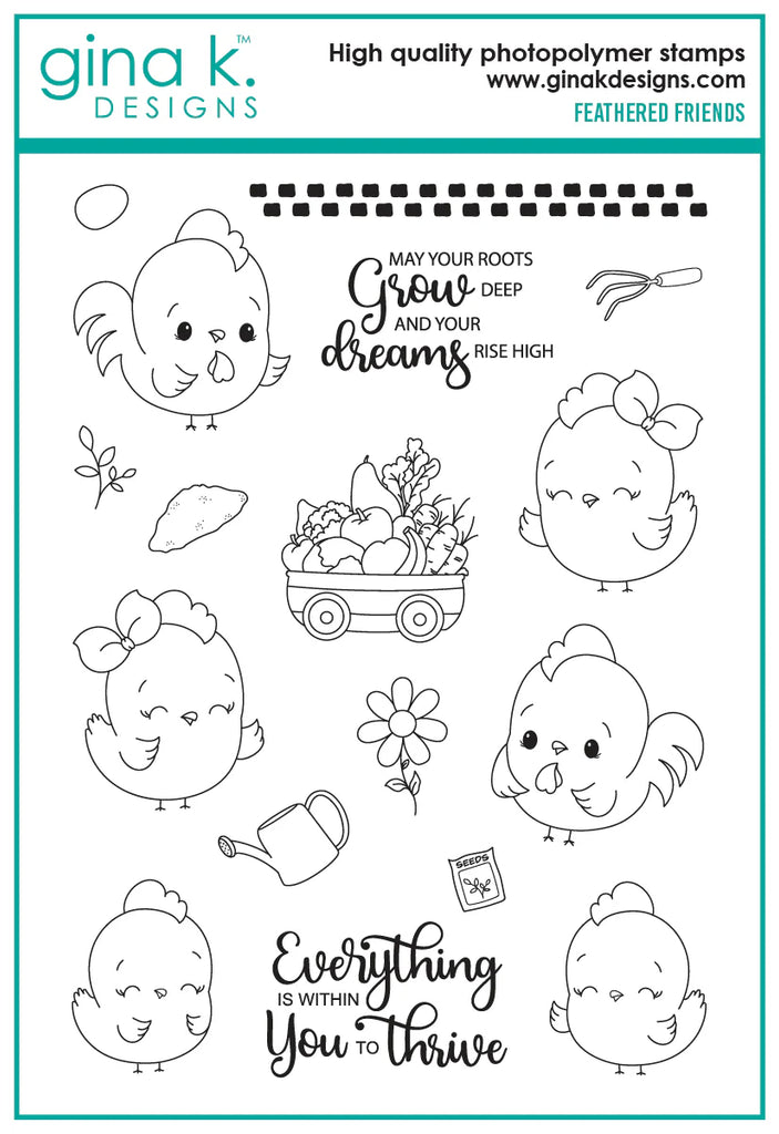 Feathered Friends is a stamp set by Dina Gerner. This set is made of premium clear photopolymer and measures 6" X 8".   Made in the USA