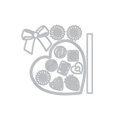 This set is for all the chocolate lovers! It features fourteen dies to create the perfect box of chocolates. Great for Valentine's Day and anniversaries, or use the chocolates on their own without the heart shaped box any time of year.