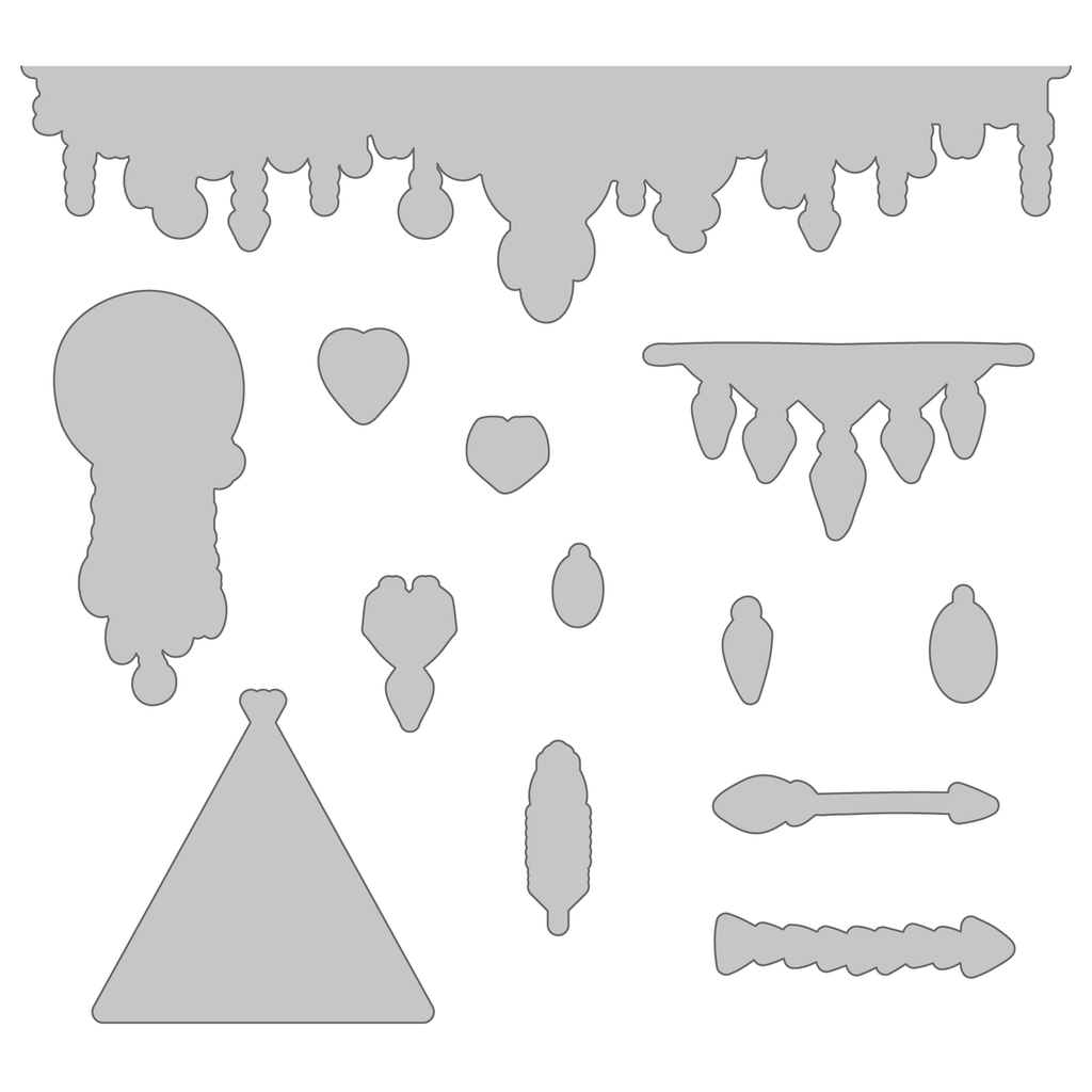 Dark grey lines indicate the cutting lines. Light grey background indicates individual metal dies.