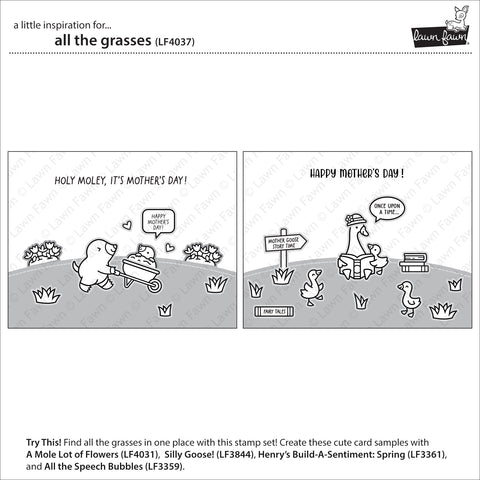 Spring is here which means grass is popping up everywhere! This fun set has 12 grassy accents to add to your outdoor scene.