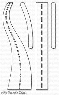 Pair the Open Road Die-namics with Town Bear, or any number of other designs featuring vehicles and scene-building elements to easily incorporate movement into your card designs. Open Road features two road options – one straight away that can be used vertically or horizontally, the other to head-on to create perspective. Use the roads alone for simple scene building or use the coordinating dies to add perfectly sized and shaped channels for vehicle movement.