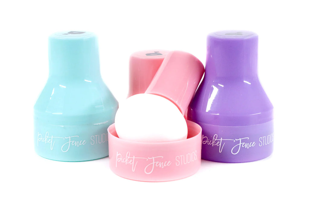 Paper Pouncers are a brand-new way to apply ink to die cuts, stencils, and many other paper crafting projects! These top quality super-soft SPONGE applicators are not your momma’s old inking tool! Paper Pouncers were custom designed by Picket Fence Studios to make applying ink easier, faster, and more comfortable on hands. Simply add ink onto the sponge head and pounce away! Use with water-based inks or watercolors, and clean with a damp cloth or wipe. Each Pouncer comes with its own color coordinated holder for simple storage and display. Soft Pastel assortment.