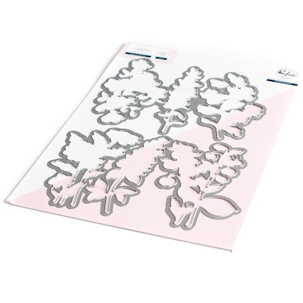 2 pc die set to coordinate with the Beautiful Blooms stamp set and Beautiful Blooms layering stencil set. Each die cuts out the coordinating set of florals from the 1 piece stamp image.