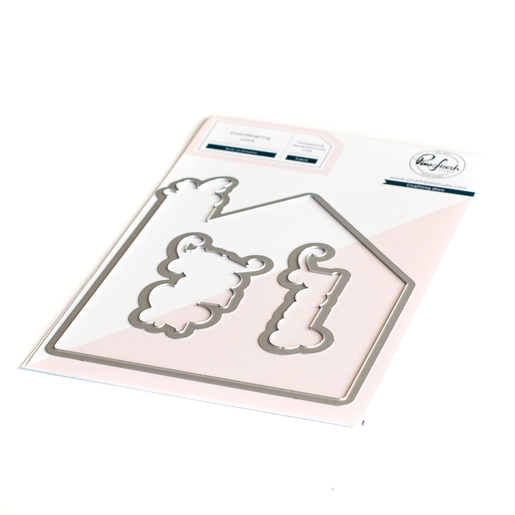3 piece die set to coordinate with the Built on Dreams stamp set and Built on Dreams layering stencil set. There is a die to cut out the entire house image, both stamped and/or ink blended. Use the house die to create a fun and exciting shaker card! There are also dies to cut out the two larger sentiments from the stamp set.