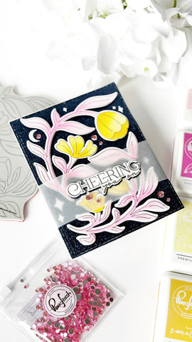 Add magical detail to your cards with the Moonlit Blooms cling stamp, designed by Inna Moreva. Stylized tulips, whimsical blooms, stars, and a crescent moon create a dreamy mix of images that can be arranged in a plethora of ways.